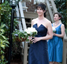 DRESS SHOWN: Bride in Lilly, Pearl Silk ShantungBridesmaids in Maggie, Navy & Sarah Jessica, Riviera